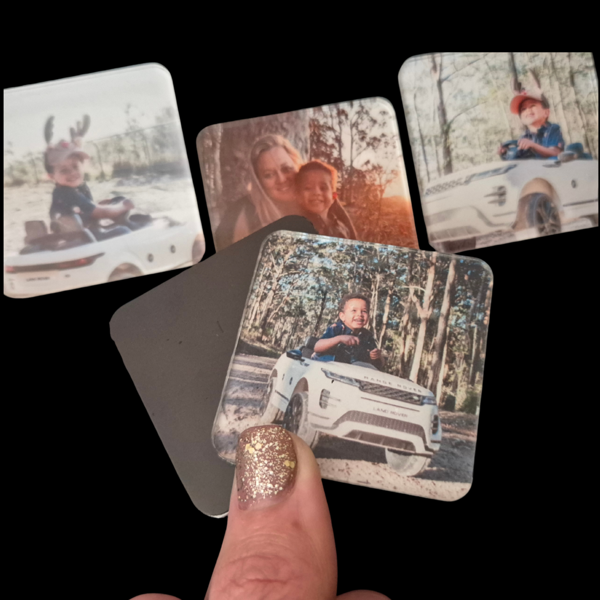 Our Mini Magnets are a square with acrylic face & magnetic backing, keeping the image protected on the inside.