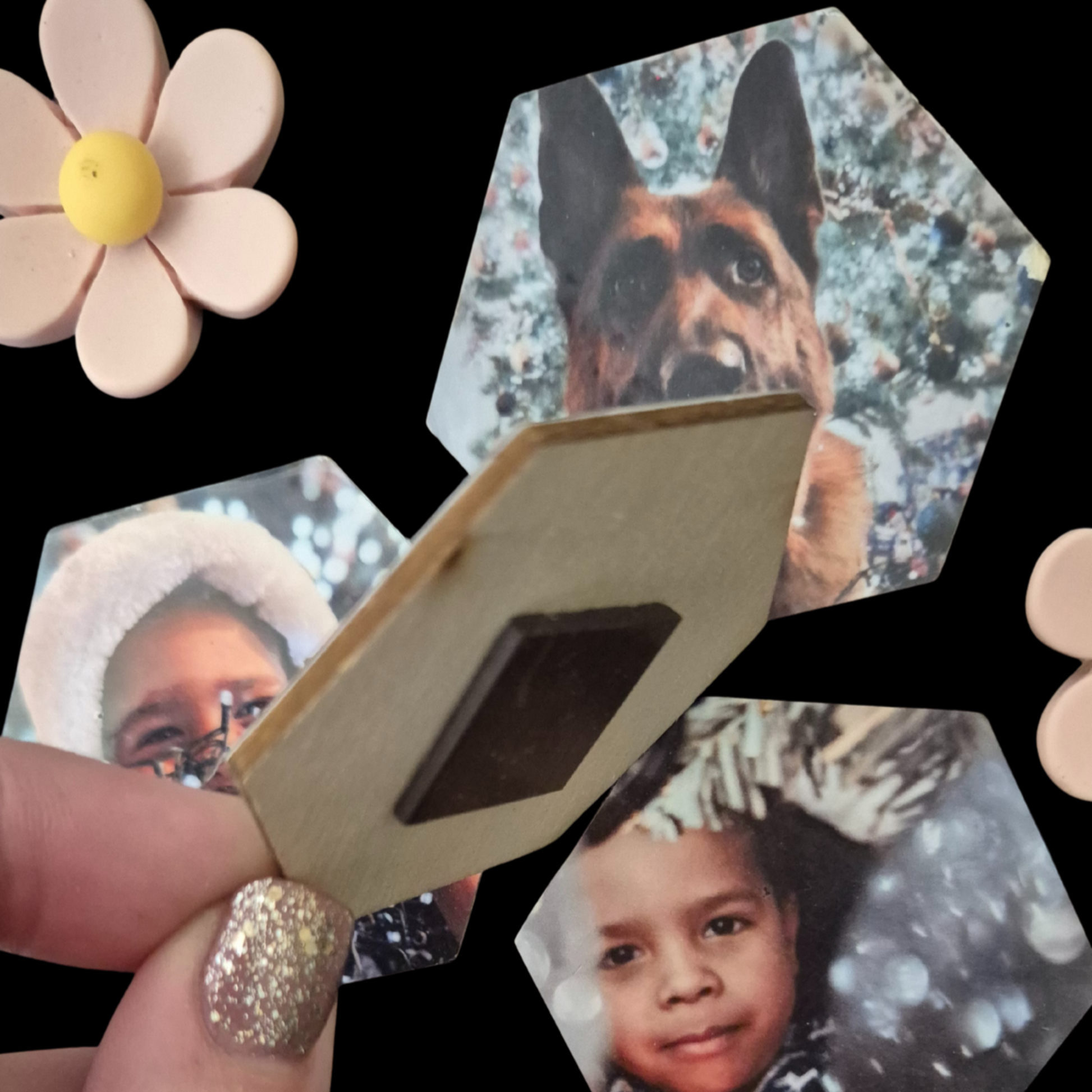 **Uploaded images will have corners cut off to make the shape of the hexagon - Keep that in mind when zooming in & cropping your images - see example image**